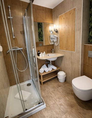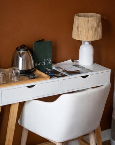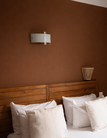 Les chambres, sobres et lumineuses, privilégient le confort essentiel et une esthétique apaisante. Les matières naturelles, le mobilier fonctionnel et les détails choisis créent un sentiment immédiat de bien-être et de cohérence.